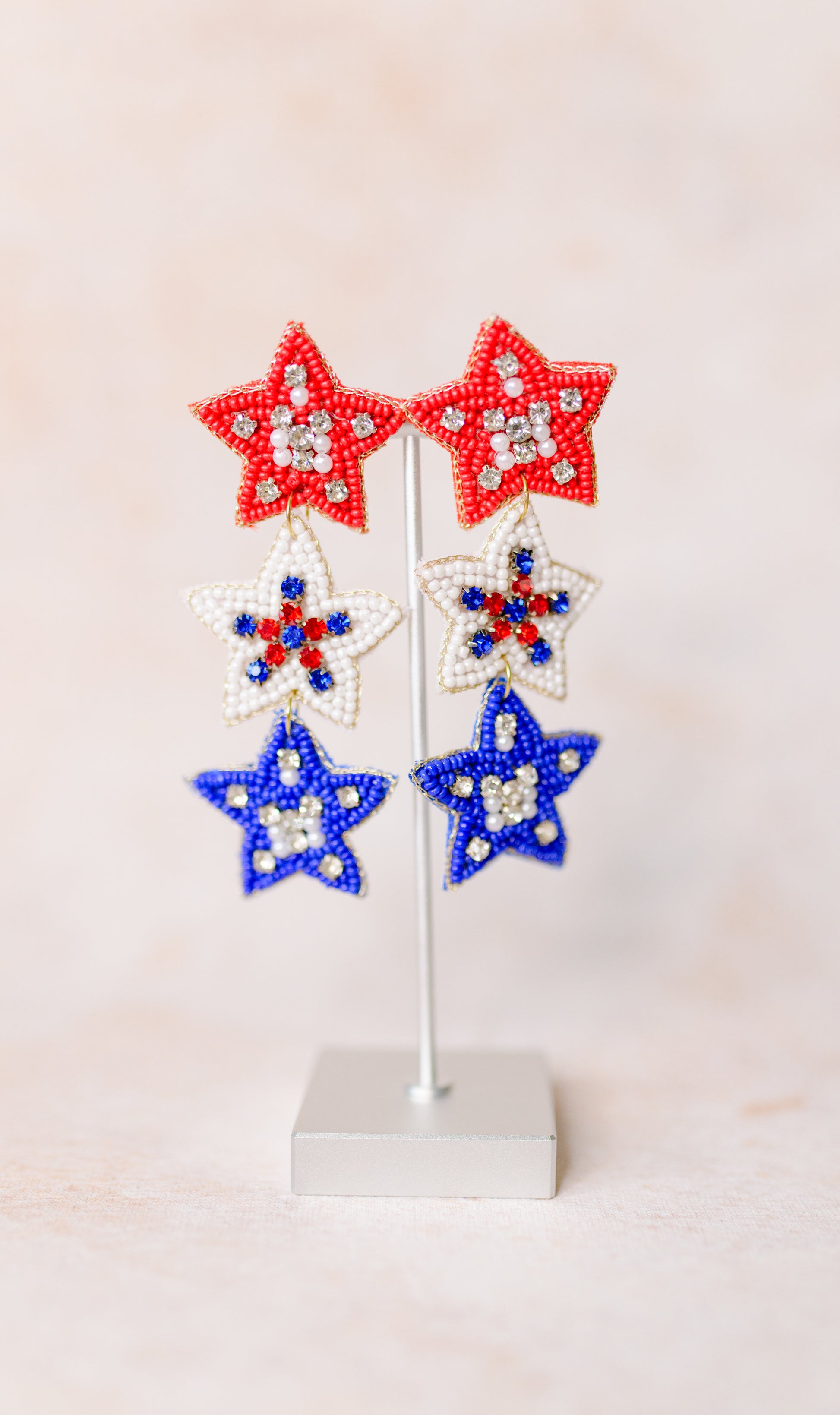 Each pair is a true work of art, carefully handcrafted to reflect the spirit of unity, freedom, and pride in our nation. Whether you're attending a 4th of July celebration, a patriotic event, or simply want to add a touch of Americana to your everyday style, these dangle earrings are the perfect accessory.